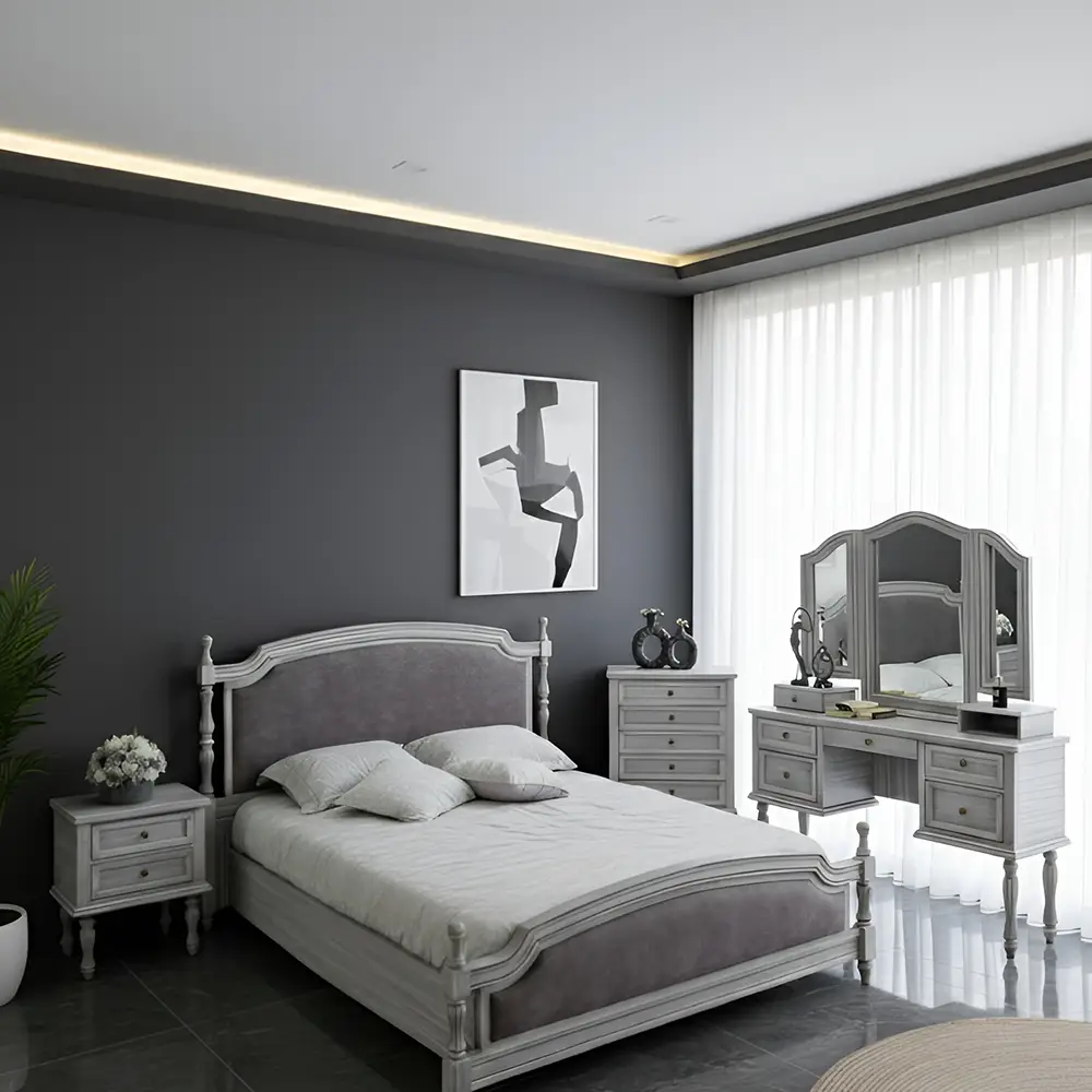 سرویس خواب دو نفره لادن با هدف ایجاد تعادل میان استحکام سازه و زیبایی ظاهری طراحی شده است و همین موضوع آن را به گزینهای قابل اعتماد برای استفاده روزمره تبدیل میکند. بدنه این محصول از ترکیب چوب و امدیاف ساخته شده تا هم مقاومت بالایی در برابر فشار و وزن داشته باشد و هم سطحی صاف و یکدست برای اجرای رنگ ایجاد شود. رنگ پتینه خش جلوهای کلاسیک و گرم به فضا میدهد و باعث میشود اتاق خواب حس صمیمیتری پیدا کند. ابعاد استاندارد تخت باعث میشود فضای خواب برای دو نفر کاملا راحت باشد. وجود میزآرایش، فایل پنجکشو و پاتختیهای هماهنگ نیز این مدل را به یک سرویس کامل و کاربردی تبدیل کرده است.